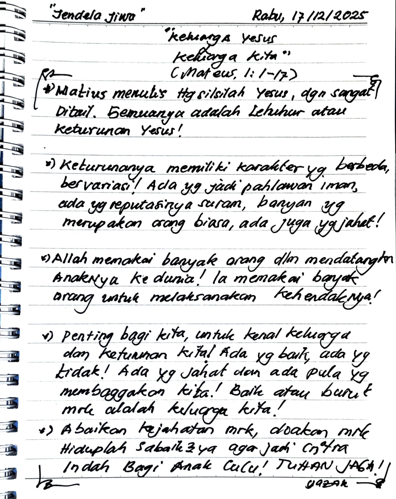 Matius menulis silsilah Yesus dgn sangat detail. Semuanya adalah leluhur atau keturunan Yesus!