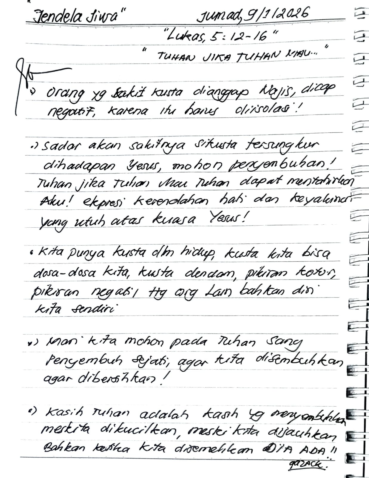 Kita punya kusta dlm hidup, kusta kita bisa dosa-dosa kita, kusta dendam, pikiran kotor, pikiran negatif ttg org Lain bahkan diri kita sendiri