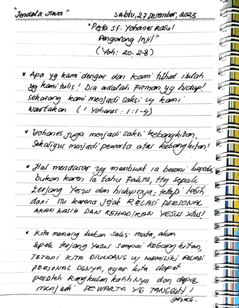 “Jendela Jiwa”“Pesta St. Yohanes Rasul Pengarang Injil”(Yoh: 20: 2-8) Apa yg kami dengar dan kami lihat itulah yg kami tulis!