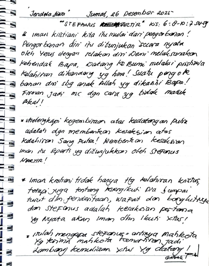 “Jendela Jiwa”“STEFANUS MARTIR”Kis: 6: 8-10; 7 54-59 Iman kristiani kita itu mulai dari pengorbanan! Pengorbanan diri itu ditunjukan secara nyata