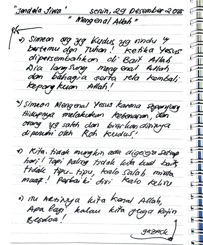 “Jendela Jiwa”“Pada Mulanya…”(Yoh: 1:1-18) Jam-jam terakhir di tahun 2025. Kesempatan renungkan perjalanan sepanjang Tahun ini! Kita tidak bisa rubah apapun